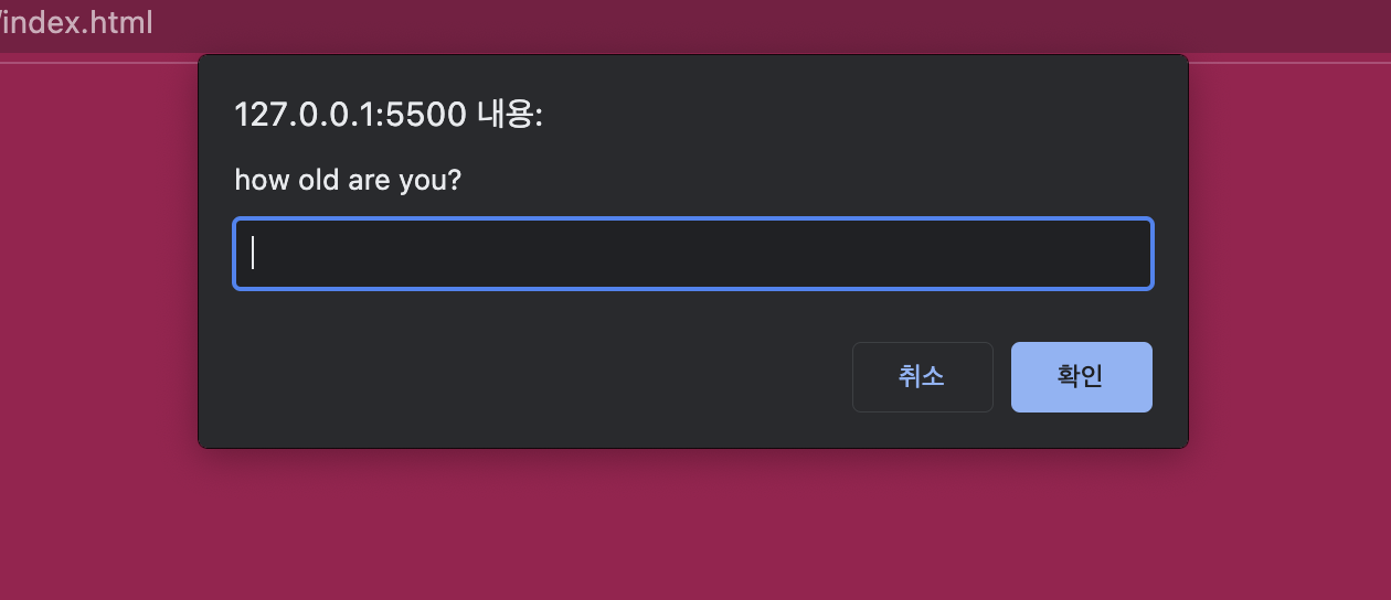 age 를 선언한다 = "how old are you?" 라는 prompt 를 parseInt 를 통해 넘버로 바꿔준다. (string -> number)