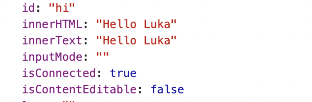 수많은 오브젝트 속에서 innerText 속에서 내가 작성한 HTML 내용을 확인할 수 있다.