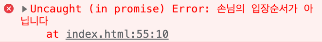 reject(new Error('손님의 입장순서가 아닙니다'));
